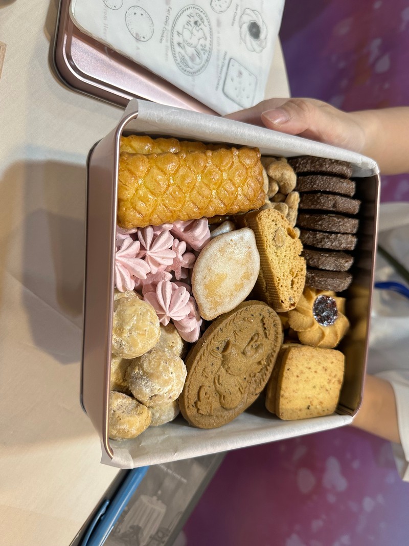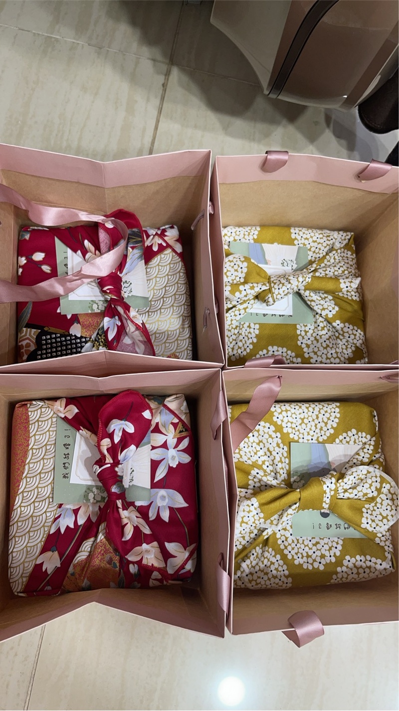 在籌備婚禮的過程中,在網路上看到youtuber影片推薦的喜餅,第一眼就讓我印象很深刻。有去台中門市現場看,門市日式風格讓人舒服,不過沒有先預約沒在門市內試吃。在婚禮展覽中也有試吃幾間喜餅,覺得還是「順道パン」比較好,店員也很親切、熱心的介紹,除了包裝特別外,手工餅乾甜而不膩很好吃。 以花布巾包裹,喜餅的包裝設計小巧可愛,鐵盒包裝質感也很好,不會太大可以當收納盒使用。