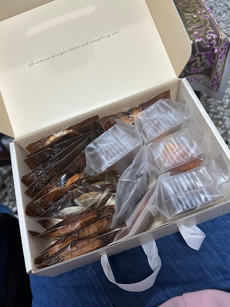 儘管是距離婚期還有一年多的時間,就早已對於備婚的一切極度積(焦)極(慮)的備婚新娘來說,有空檔就是在找各種廠商的路上,在於喜餅的部分,始終就是希望找到既好吃而包裝以鐵盒為主的店家,看遍各種知名以鐵盒販售為主的喜餅廠商,總覺得還是沒法有自己的獨特性,無意間關注到函絮洋一眼就愛上主題及圓盒包裝及客製的內容搭配,一看這就知道我的命定廠商,然而也因時間還早只敢默默的關注著,但因有這活動真心不想錯過這麼優惠的方案而提早申請了試吃,感謝闆娘的貼心小卡更感謝試吃的每一樣產品都不讓我們失望,當天帶回去給長輩品嚐挑選真心獲得極大的讚賞,瞬間一整盒的試吃就一掃而空,只能說要挑選品項就是極大挑戰啦,每一項餅乾及糕點都吃得出用心的感覺,真心推薦喜歡擁有自己獨特性風格又希望這份用心是不會被浪費的備婚同伴們選擇函絮洋,他們一定能提供給你滿意且獨一無二的幸福祝福❤️