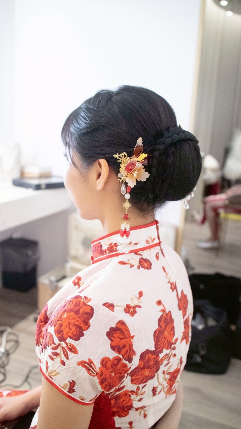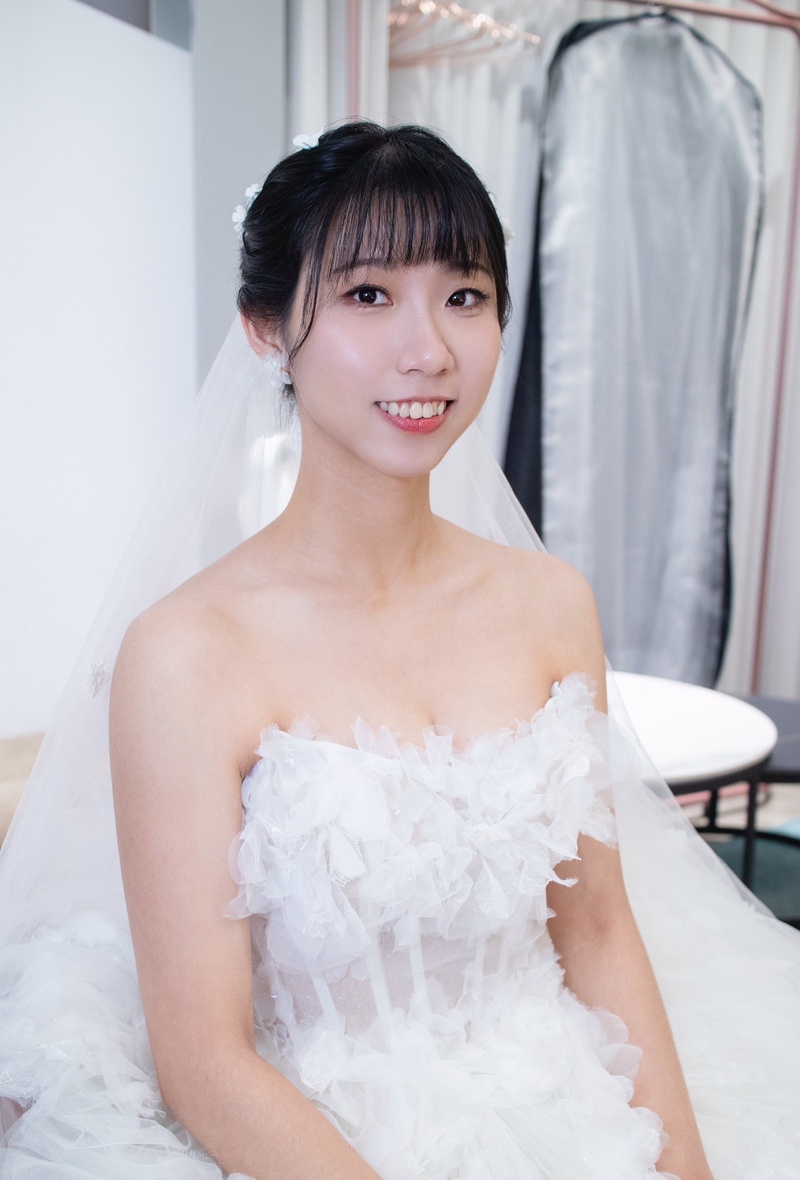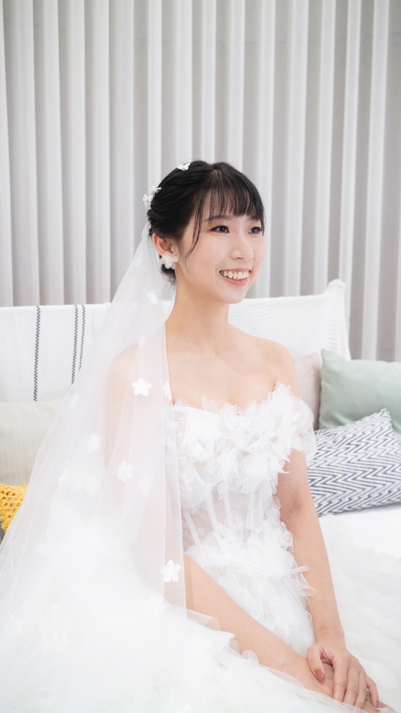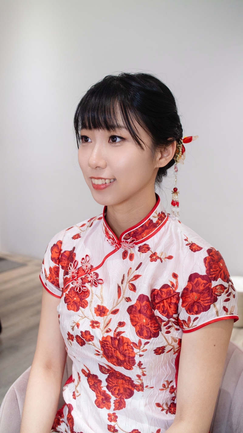 當時看了老師在網站上的妝造覺得很自然好看,所以就先預約了試妝。從試妝到正式婚宴的過程中有做妝造的部分,可以感受到老師對待每個步驟都很細心。化妝時很溫柔仔細,做頭髮的造型時也很注意有沒有拉扯到頭髮的問題。此外,在準備婚禮的期間老師也會提醒怎麼做保養會比較好。也可以跟老師很好的溝通想要的妝感或髮型。真的在婚宴的當天,看到經過老師巧手打造出來的造型,真的覺得錢花得很值得~如果正在找新祕的話,我非常推薦薇瑄老師