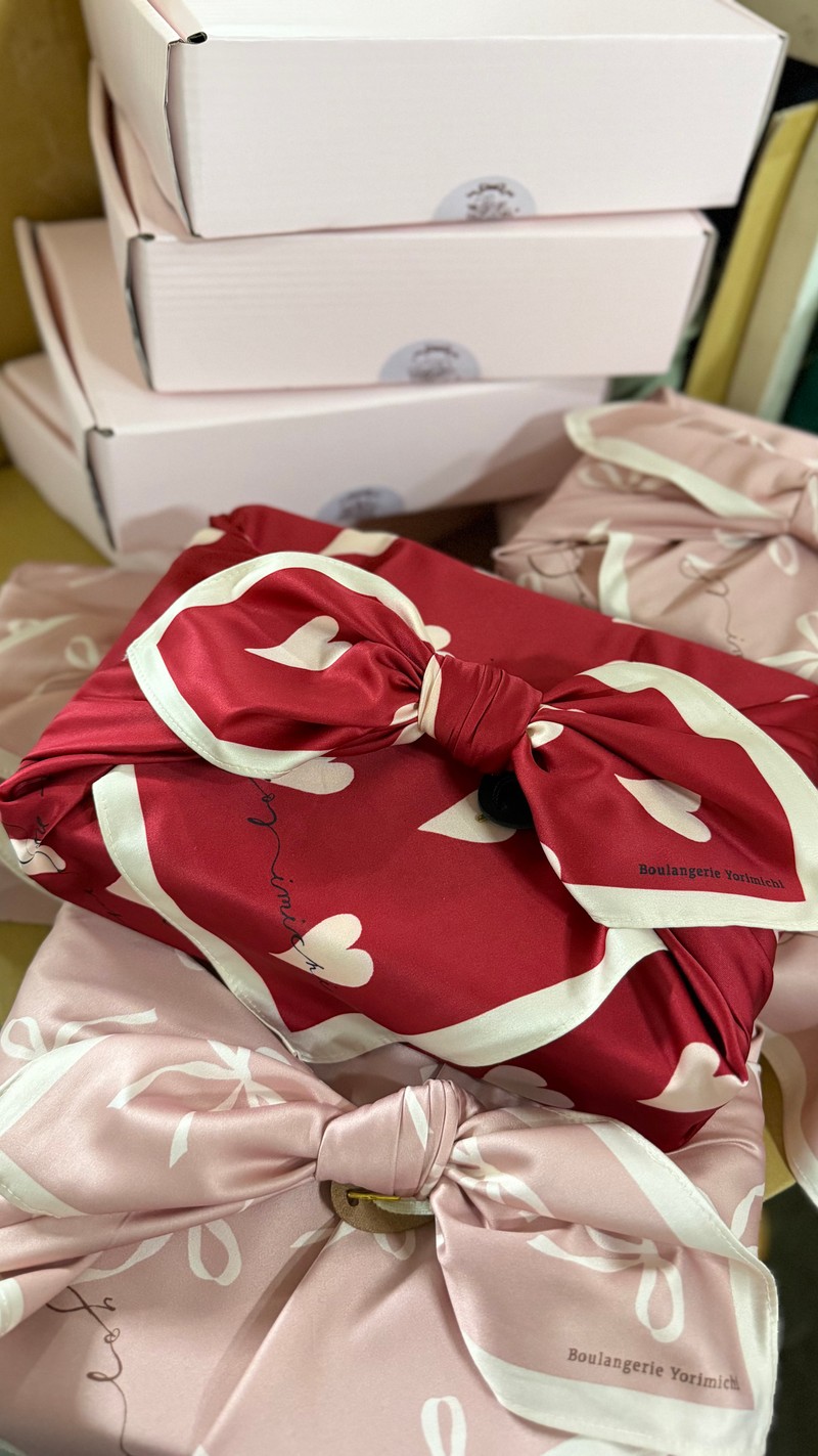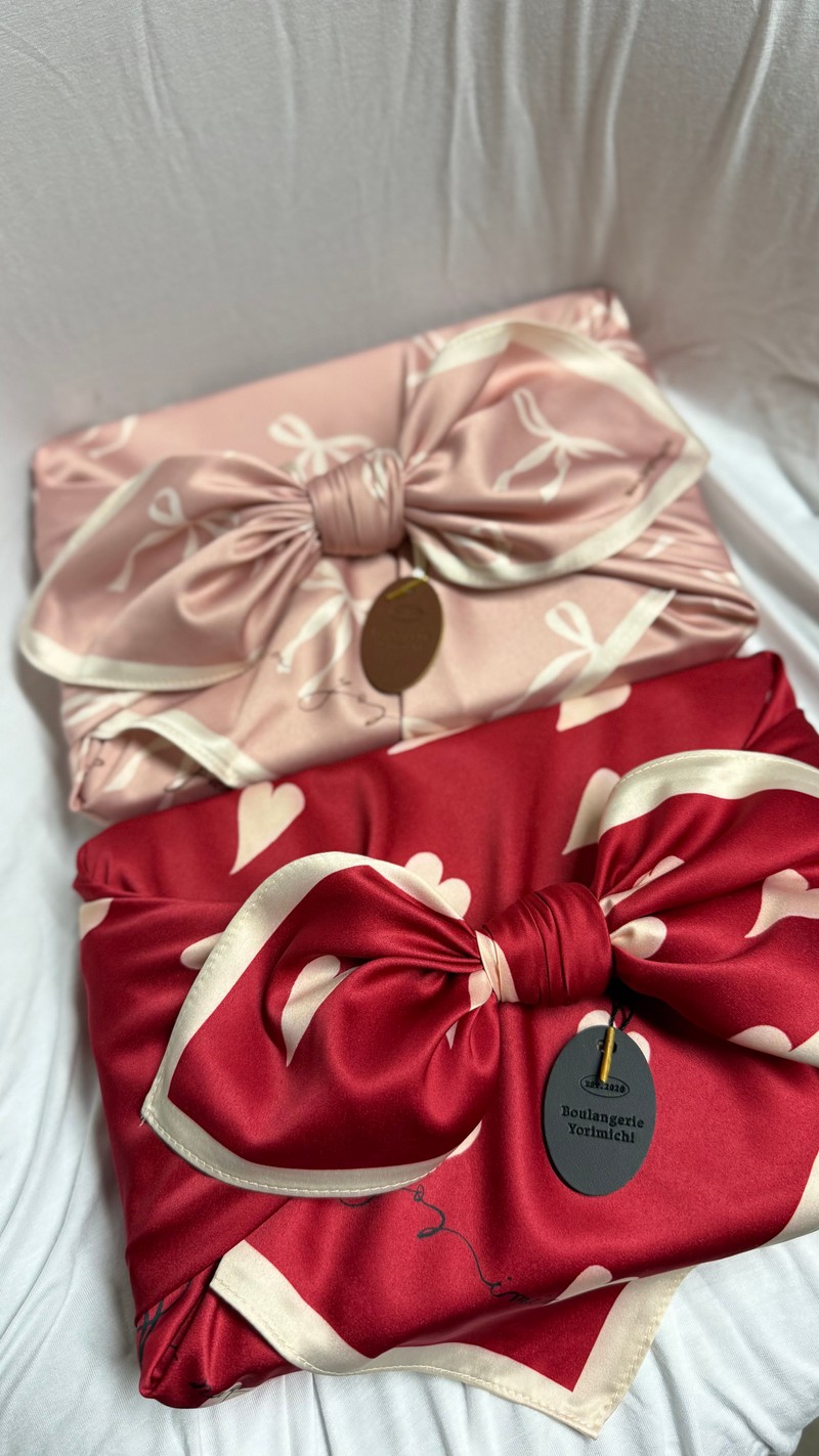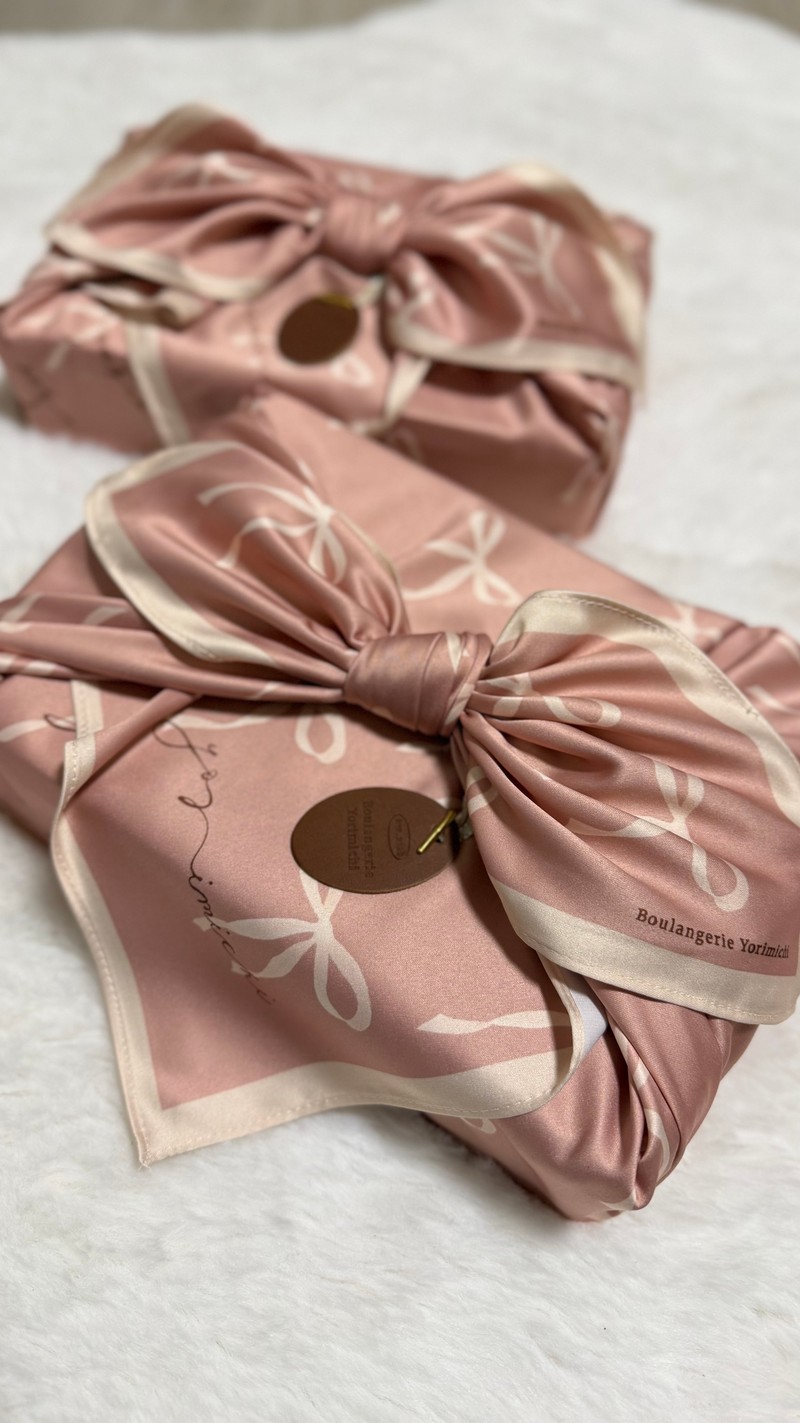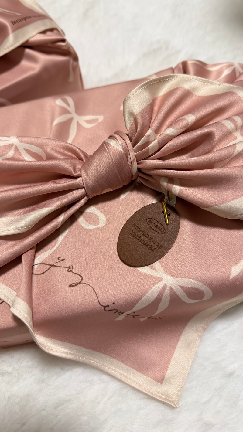 而外層使用的絲巾更是大加分,緞面材質超美,可以當作圍巾或包包的裝飾使用,完全實用又有儀式感,讓每個收到餅的人都能真正重複利用,這點非常貼心。