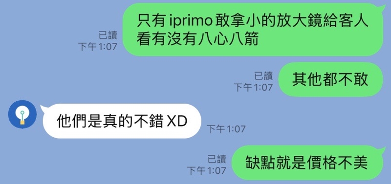 本人龜毛又選擇困難,服務我的Selene真的是非常有耐心、貼心又細心也不會給我壓力硬要銷售,讓我很放鬆~在I-primo待了將近三小時,不怕我戴,了解我的喜好,每款都願意讓我嘗試。
