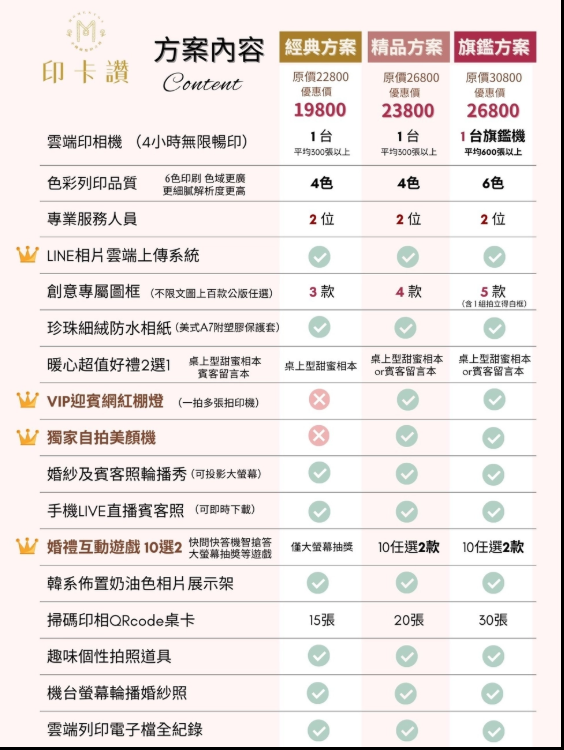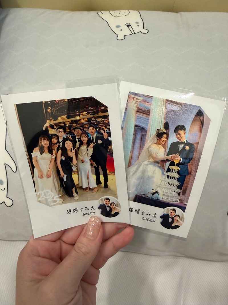 當初在婚禮展上,在「印卡讚」和「拍拍印」之間猶豫許久,最後因為印卡讚的套組內容更豐富、現場服務人員又十分熱情,便決定選擇印卡讚。