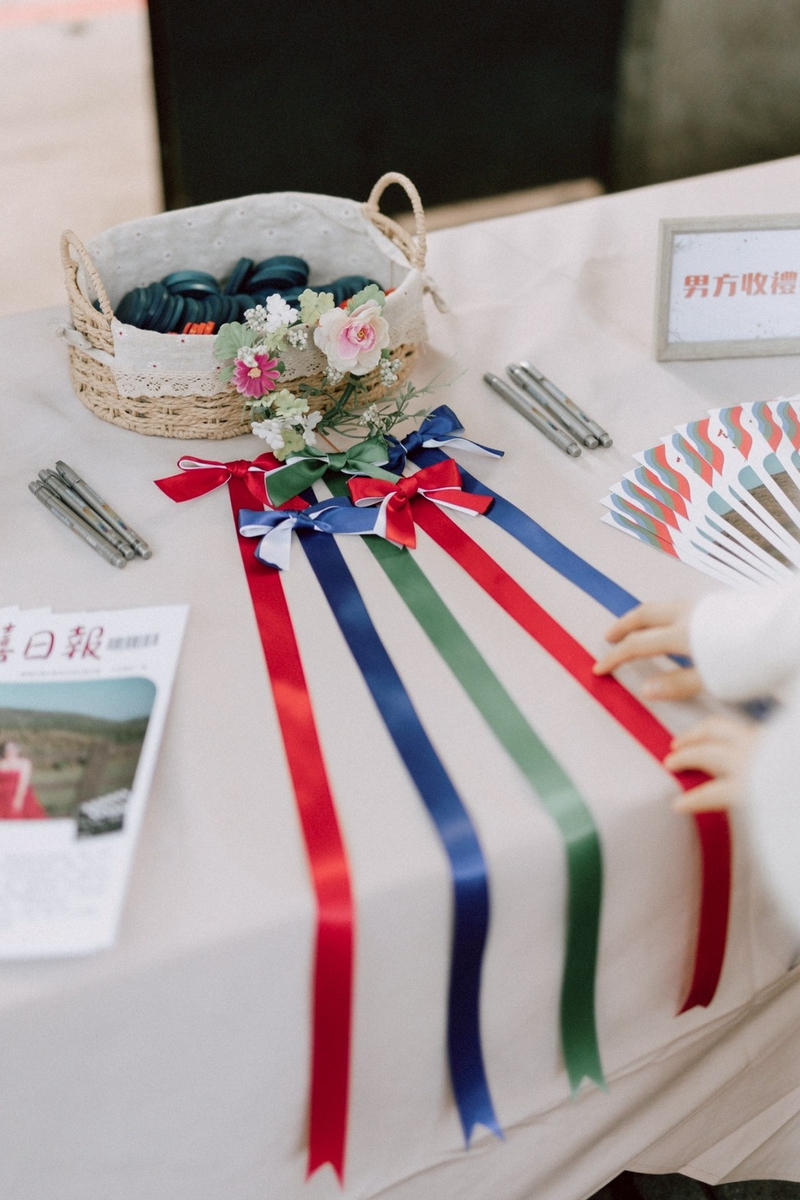 也深深感謝雷依,在新人的天馬行空之下,始終給予高度支持與滿滿的情緒價值。每一次嘗試後,都願意一起討論、修正方向。也因此,在籌備婚禮的路上,我們總是不斷遇見貴人,最終讓深坑春風雜貨店的店長,成為婚禮佈置中不可或缺的重要角色。