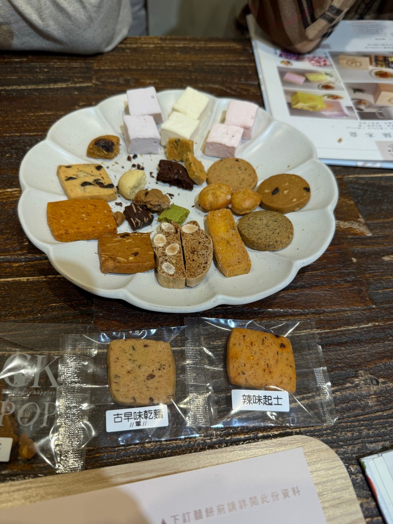 試吃了第一間威廉公主,當下覺得餅乾好吃,但過了4天,我對威廉公主的餅乾沒有什麼記憶點,挑選喜餅我最先篩選是價格份量與好吃的部分,就第一個從名單剔除,第一天試吃1.威廉公主2.順道3.黑色棒棒糖,第二天Ooh la love,2.順道考慮到沒有單一包裝所以就刪除3.黑色棒棒糖,當下試吃的時候前面已經吃過午餐又試了兩間,說實在 第三間我已經吃不太下了 但還是盡力吃每一種口味,吃不完回家就繼續試吃,回家有胃口後又重新品嚐,黑色棒棒糖是目前三間最好吃也最大方的,所有餅乾最好吃的是茶香味餅乾,香味有做出來。