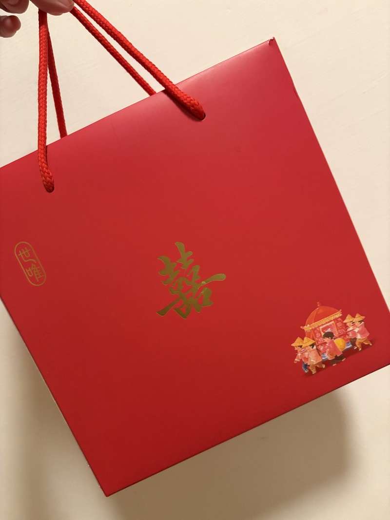 一體成形的紙盒和提袋,沒有多餘的包裝,就十分大氣喜氣。