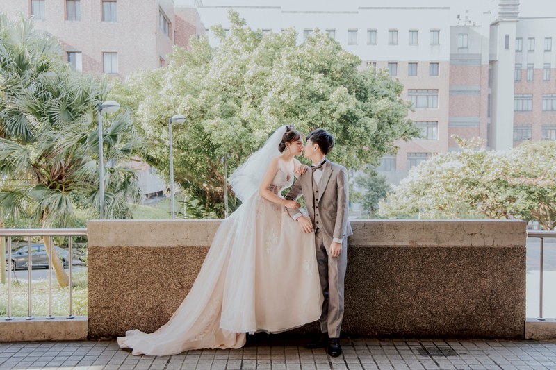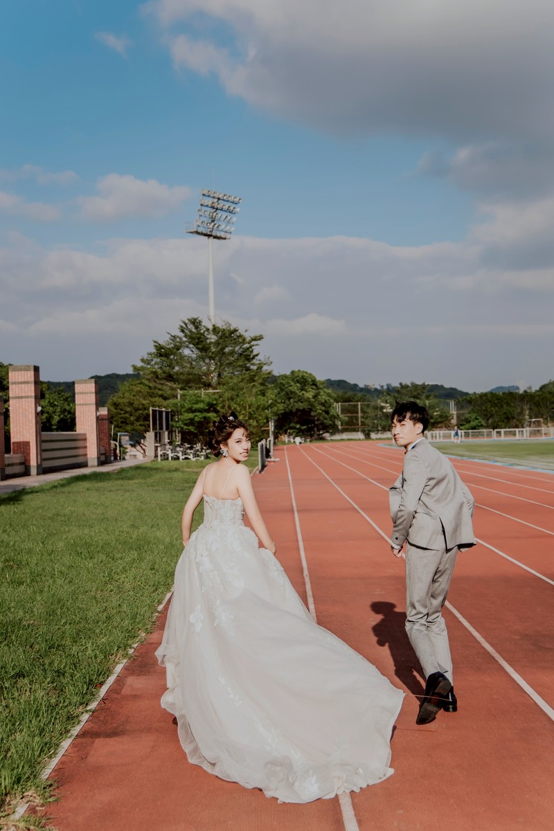 把婚紗拍攝跟登記在一天內完成XD 並且也滿足回我們母校拍攝的願望♥