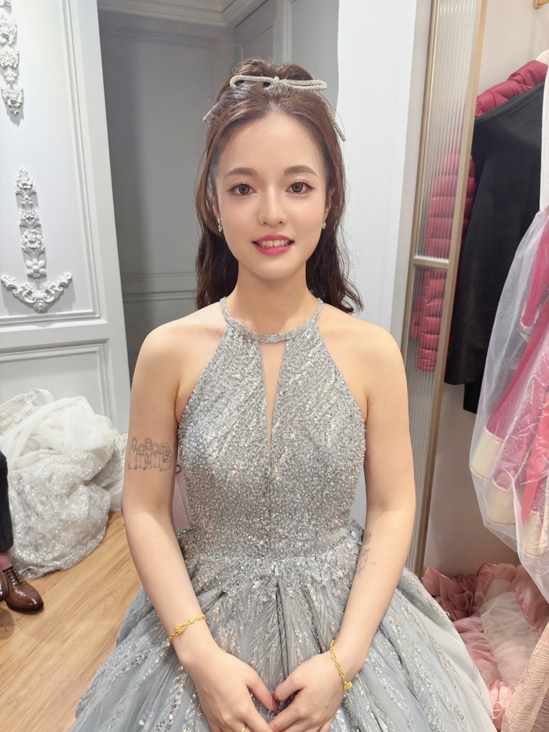 與老師討論造型的過程,非常迅速且歡樂😆對於我這種選擇障礙的問題,老師都能立即給予建議、協助決定👍🏻乾淨的妝容、浮誇的飾品,真的是我非常想要的🥰