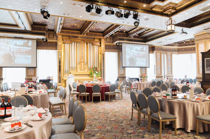 映入眼簾的是可愛的地毯和華麗的內裝,和樓上的廳房風格截然不同,符合了我們對場地的想像!因為白金漢宮有低消,所以為了在這場地舉行,開始思考請朋友來參加喜宴的可能性,隔周就敲定日期簽約了!