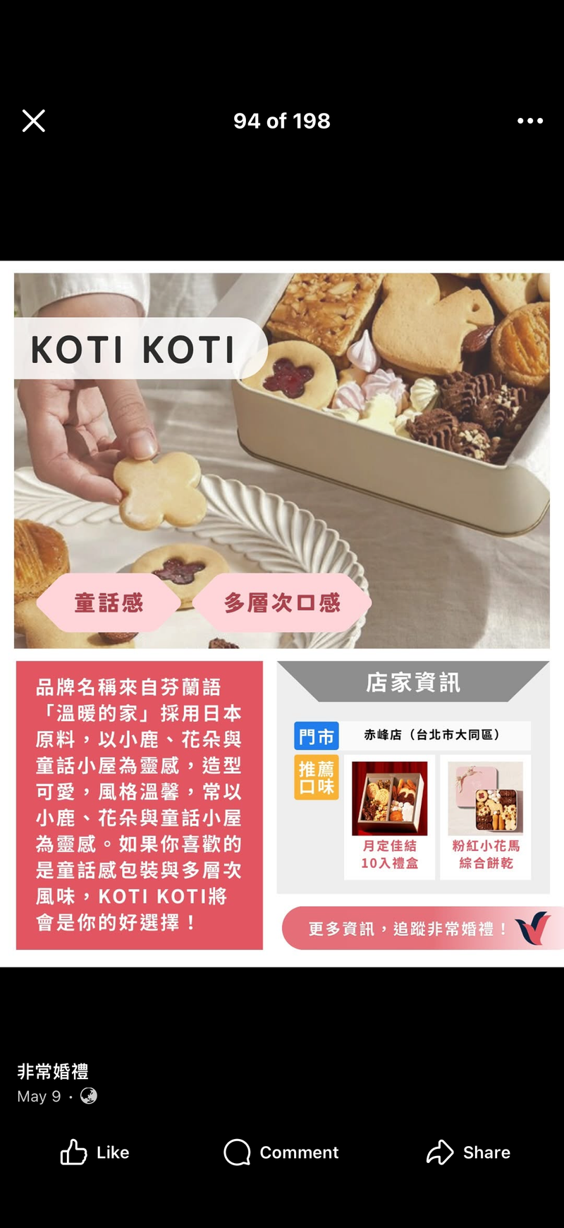 逛了市集一圈之後,我們依預約時段回到了koti koti,非常巧的遇到了同一個在赤峰街的店員與我們打招呼,並協助我們等候入座。整體流程很順利也一樣親切,活動當天也看到了很多不同的禮盒組合,我們了解了所有活動細節之後就在隔天選好了款式並下訂了。官方line的服務和回覆也都相當親切和快速。期待拿到禮盒的那一天 ,謝謝團隊們親切有效率的服務,也推薦有興趣的朋友們可以參考看看。