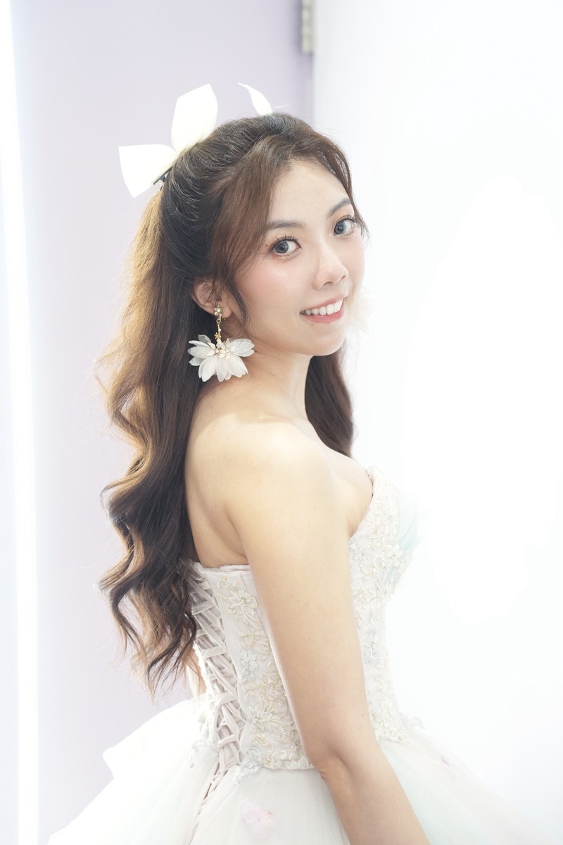 謝謝Mia讓我當一天公主。婚禮前的溝通都有在婚禮當天滿足我的需求。飾品及皇冠也都很多樣可以選擇,也會建議適合的飾品。妝前保養、底妝、遮瑕、睫毛等等每個步驟都很仔細,也會在每次進場前檢查妝容及頭髮造型。推推!