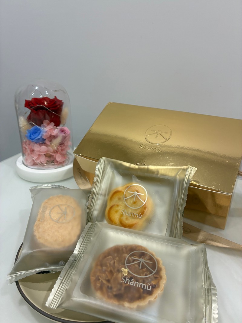 不負所望,試吃當天,門市獨立包廂幽靜的氛圍,配上甘甜的茶飲,每一項試吃餅乾都沒踩雷,融合台灣在地特色食材,展現西式餅乾的台味風格,拿來贈送給外國朋友再適合不過。