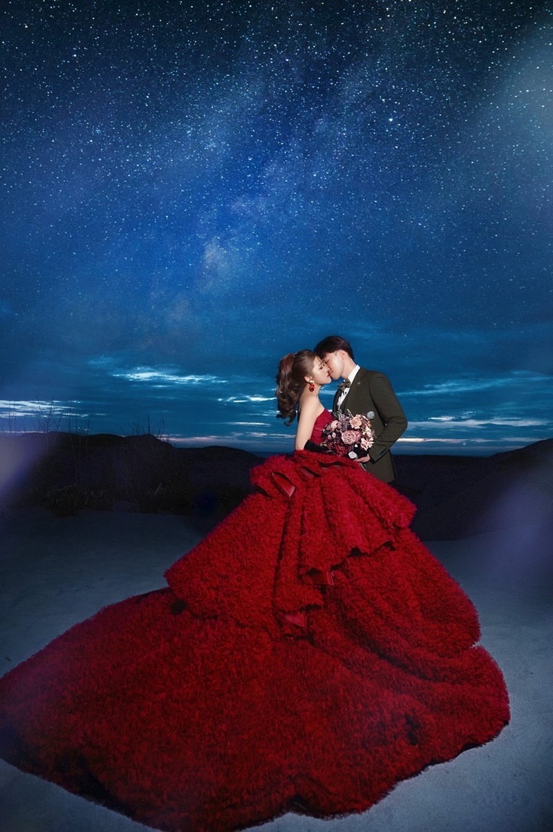 由於我們使出了資本主義的力量,禮服與造型組合那叫一個多變,還好在拍攝前夕有與攝影師大邱、造型師ANDA兩位老師充分溝通,討論出雙方都滿意的拍攝方案,這個過程非常重要,不只是提出自己想要的風格,老師們也會根據我們的個性與氣質,幫我們勾勒出最適合的畫面。