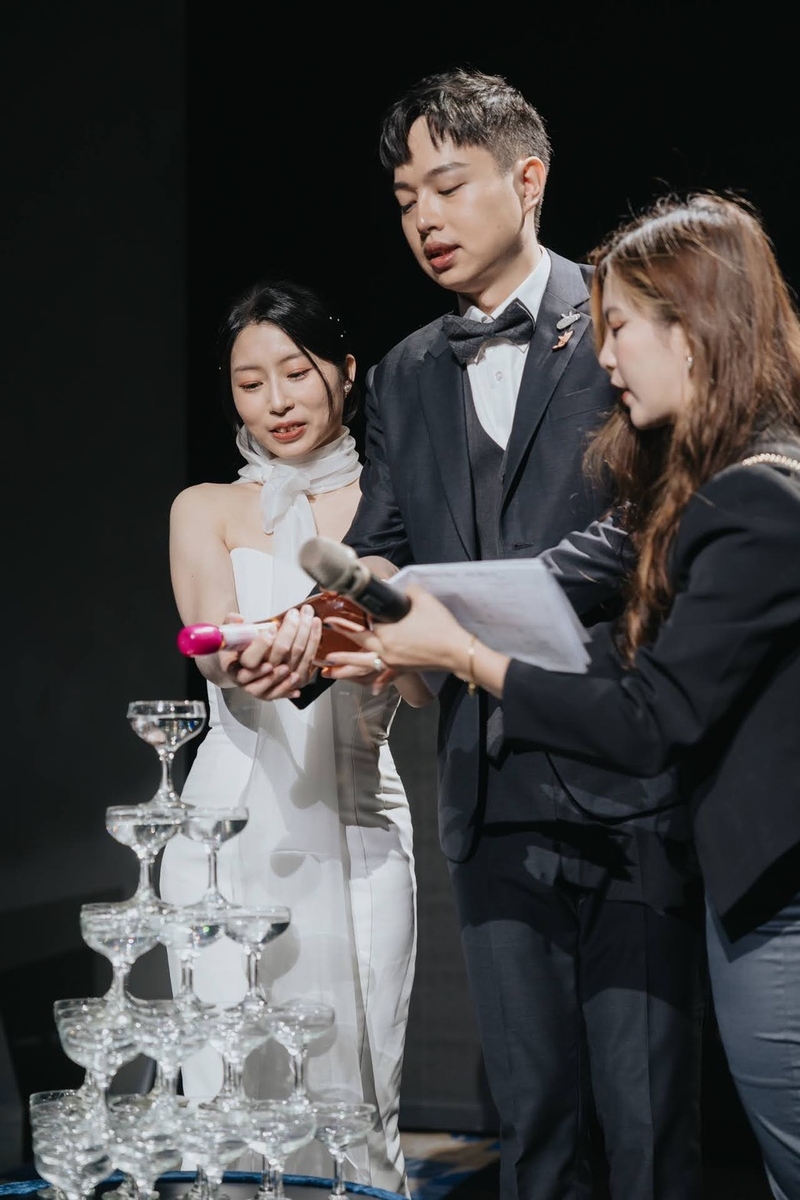 因為她深度參與了我們的籌備,她講出的每一段致詞、分享的每一個細節,都是我和老婆真實的生活點滴。她在台上的台風穩健,語調充滿真誠,讓賓客是真的走進了我們的故事裡。好多朋友事後都跑來跟我說:「你們主持人好棒!怎麼能講得這麼感人、這麼有溫度?」