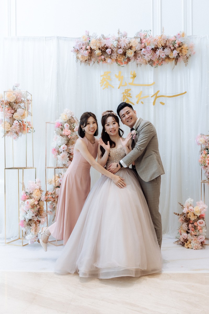 婚禮結束後,很多親人朋友同事都來跟我稱讚主持老師的風格及專業,感覺的出來老師很用心也很投入,在這短短的幾個小時裡,透過老師的專業用心,讓整個婚禮流程順暢且溫馨。