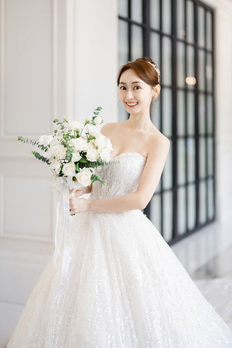 婚禮當天其實情緒很緊張,腦中只記得要微笑 我想要照片拍得美美的 其他真的什麼都想不到