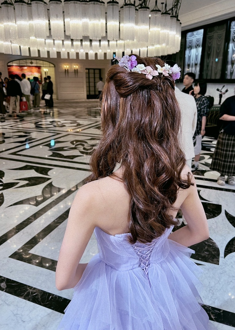 主要我是希望妝感偏自然 想要精緻有氣質 那種「自然系小仙女」的感覺。當天也是身邊最熟悉的親朋好友 歡樂活潑溫馨的感覺 搭配這樣的妝容我覺得非常耐看 超級喜歡