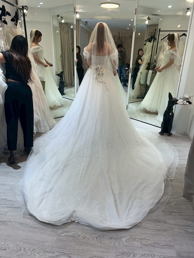 還有謝謝婚紗專員 瑀柔,嬌小可愛又超好聊、超有耐心,對我這有選擇障礙的客人超有愛💗 每件婚紗那麼重卻堅持讓我多穿幾件才知道適不適合,也會主動拿她推薦適合我的婚紗給我穿穿看、不喜歡也沒關係,說實話我看她小小一隻抱著婚紗跑來跑去,真不好意思🥹她真的太有耐心了。