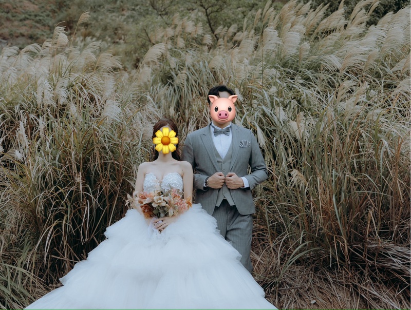 還準備各種小道具幫我們拍合照,讓我可以直接看到「新郎站在我旁邊時,畫面會是什麼樣子」。