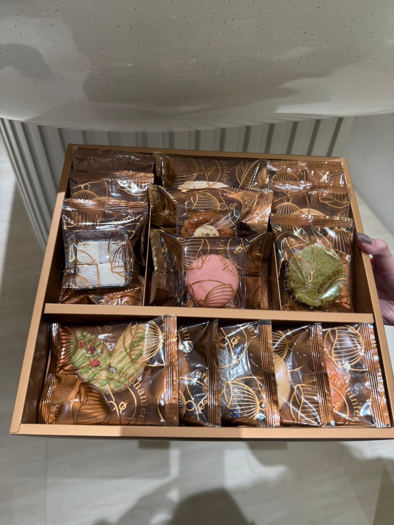 禮盒設計典雅、提袋質感也很好,而且禮盒內容物完全客製可以選擇自己喜歡的餅乾,更要大推的是服務!子容的介紹非常細心又親切,讓我們在試吃過程中不只吃得開心,也更了解每款喜餅的特色。因為當天感受很好,餅乾也好吃,我們就直接下定了~