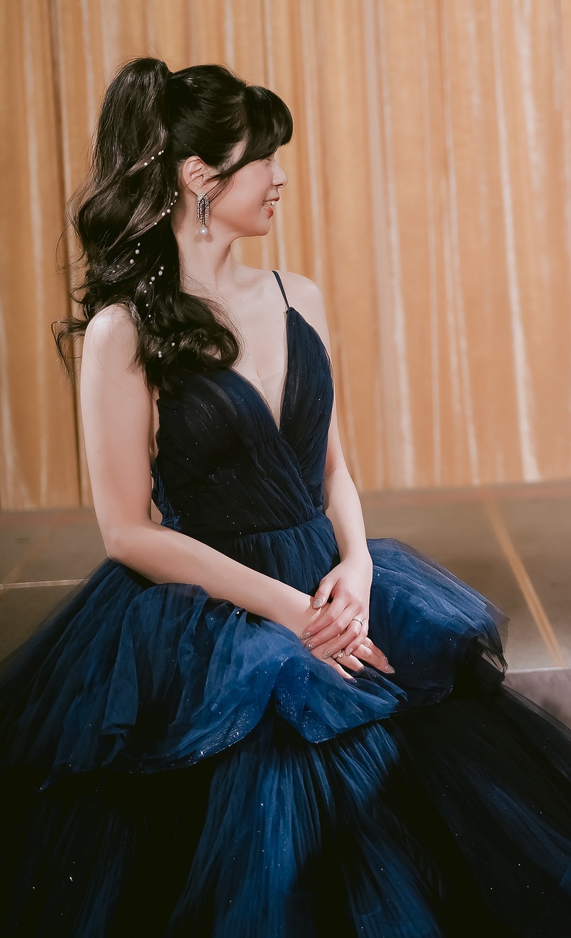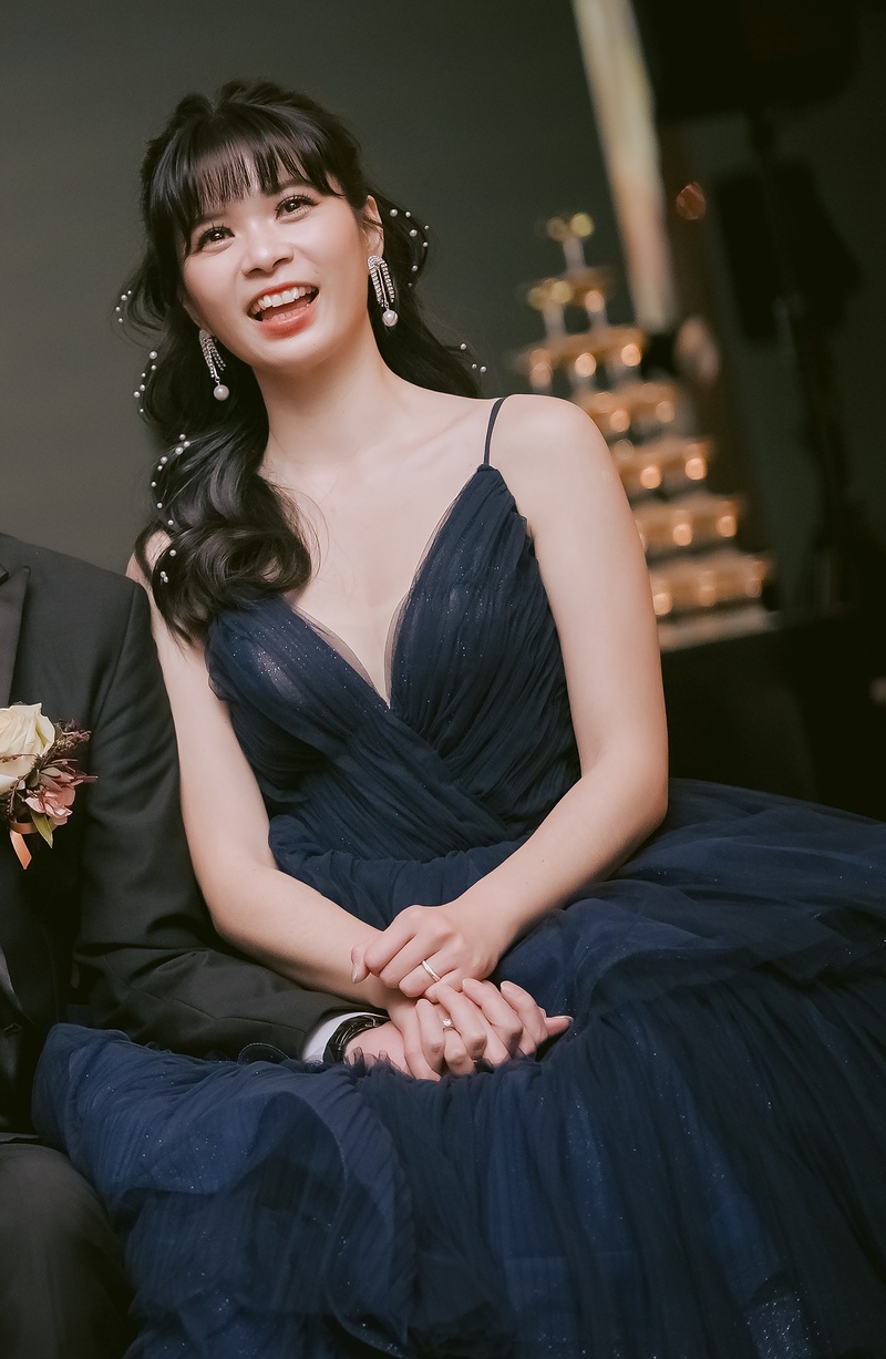 最後最後,婚宴當天,老師真的完成了我最愛的造型❤️ 眼睛放大到可以電暈賓客,而且原來瀏海新娘也可以美美的結婚! 因為我很不喜歡頭頂塌塌的造型,所以林琳老師捨棄氣質低包頭,改成高包頭,整體拉高了視覺效果,我真的非常喜歡!!