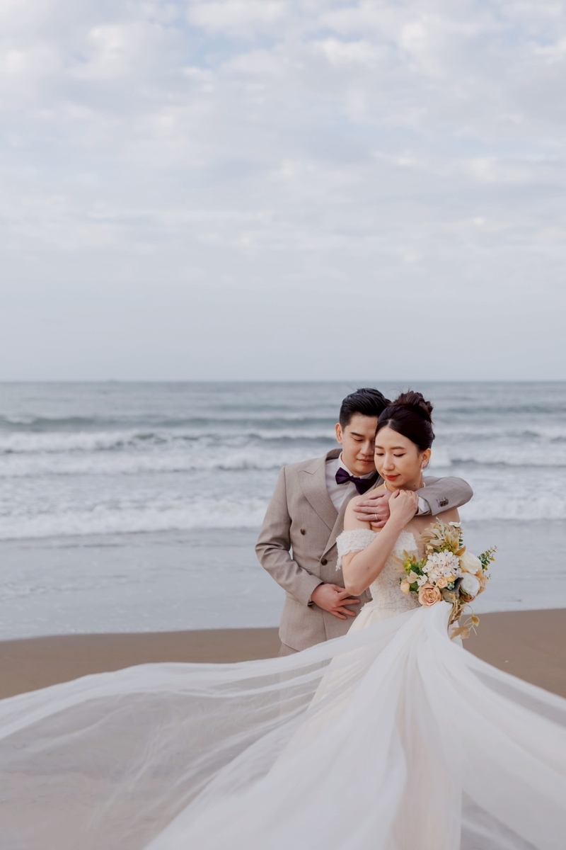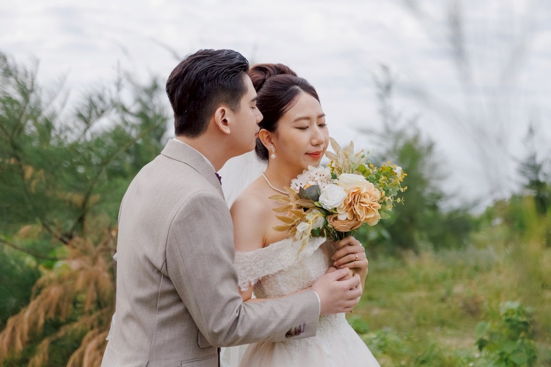 挑選禮服時,禮服秘書如如也很貼心,會依照身形與拍攝風格推薦合適的款式,試穿過程沒有壓力,也不會因為沒有加價而被差別對待,這一點真的很加分。