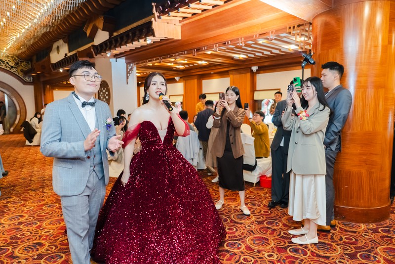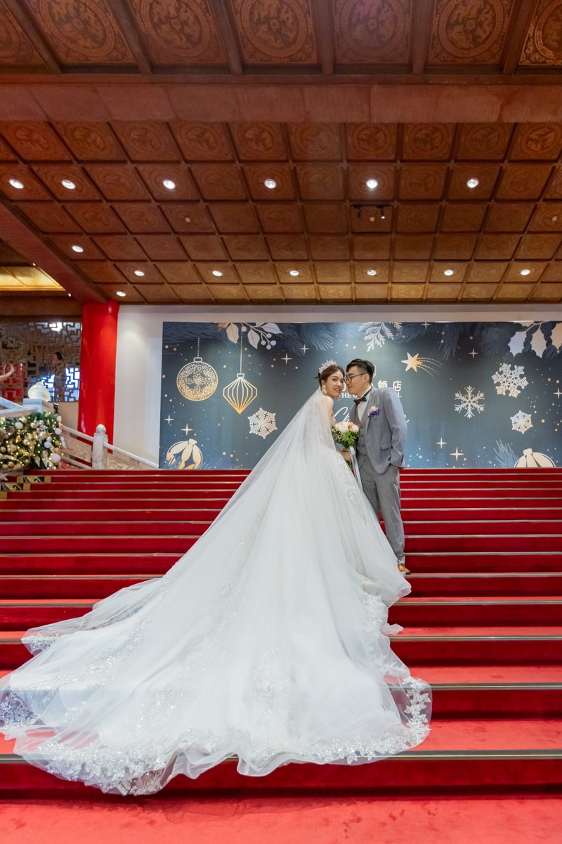 整體來說新娘當天幾乎沒有參與到婚禮, 甚至備婚期間常常想像婚禮當天可以看到所有生命中最重要的人, 還能好好聊天真是純屬妄想, 大多三進時間只有露臉一下就要進行下個妝梳化或者爭取時間拍照(感謝@Gees吉事影像婚禮紀錄 有接住我在網路上找的圓山歷代新人能拍的各種場景, 以及他本身有高雄圓山婚禮拍攝經驗, 有好幾張照片真的拍的極美, 古裝配圓山真的是絕配), 注意到的視角是渲渲(主持人)有在彩排時注意到我跟媽媽情緒不佳所以即時調配進場順序, 兩位小管家一直注意我的儀容還有裙襬, 這在馬來西亞宴客(馬來西亞主持人真的超雷, 宴客當天居然給我戴綠帽, 完全不跟大廳經理溝通, 二進還要我傳簡訊提醒, 講完話就消失, 結果發現在角落滑手機, 二進進行到一半直接閃人, 敬酒跟送客居然是攝影師協助我們完成... 但新秘幫我畫的妝真的讓我驚艷許久)形成強大的對比, 絕對是奢華婚禮(圓山)與平價婚禮(馬來西亞)體驗。