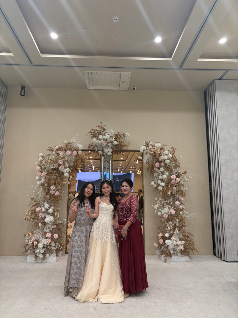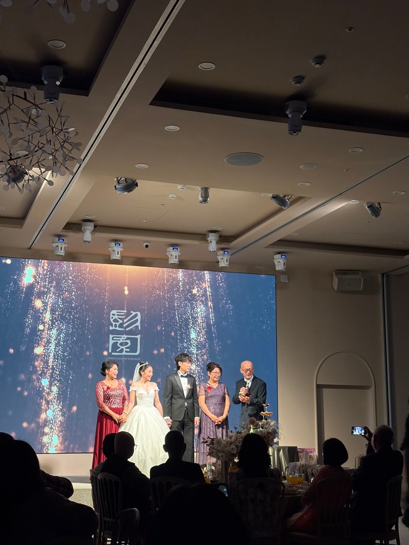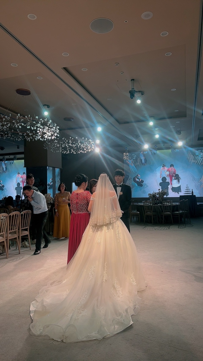 (2025/12/01 晚宴)婚禮能夠順順利利完成,真的要大力感謝新店彭園的專業團隊。從籌備到婚禮當天,整個過程都讓人非常安心,對於不喜歡處理太多細節的新人大大加分。第一次去看場地當下就決定了 ,場地挑高寬敞,搭配水晶燈與整體佈置,浪漫又有質感。當天賓客對餐點的評價也很好,吃得開心🥳