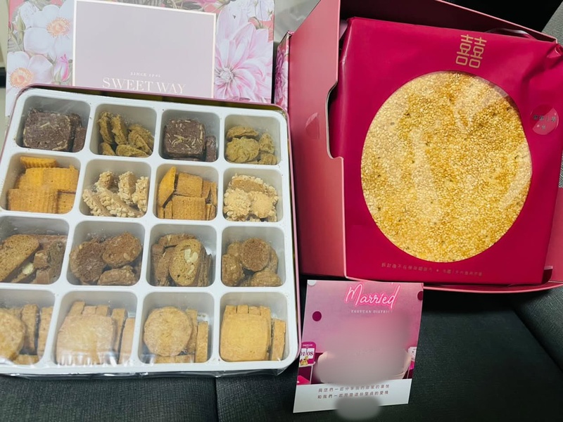 一開始就有先試吃過世維的喜餅,整體口味表現很好,尤其是大餅不會太甜,口感細緻、不黏牙,吃起來很順口,對長輩來說也相當能接受。餅乾的尺寸與份量都剛剛好,不會太大塊,一次吃完很舒服,口味多樣卻不會有負擔,讓人忍不住一片接一片。
