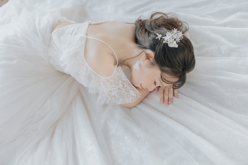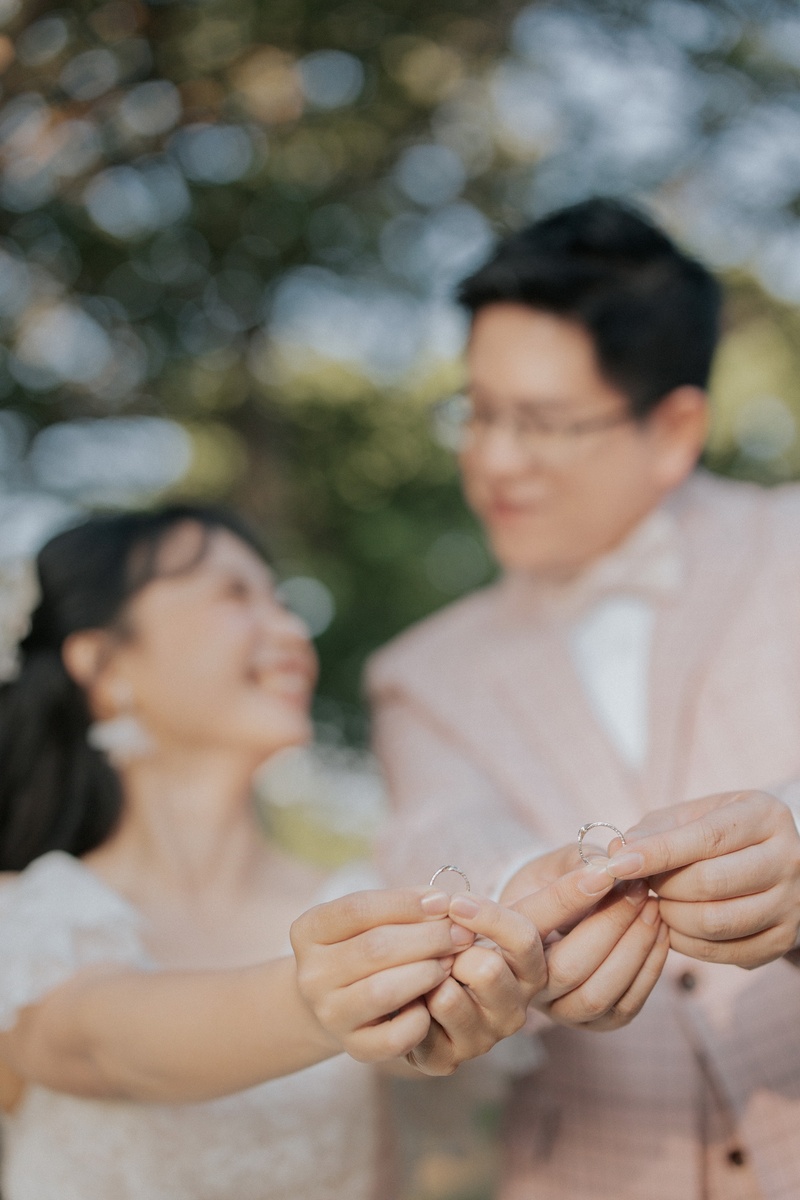 還沒開始前,我和隊友一直在網路、實體店面搜尋不錯的婚紗公司,我們很幸運的在四處走走逛逛時,看到了Only You的實體店面,並且也被美華姐邀請入內,親切的解說,讓我們決定在這邊拍攝。然而在決定拍婚紗前,其實我們心裡多少有些忐忑。我們兩位平時對鏡頭都不太熟悉,尤其隊友是個標準的 I 人,很擔心在鏡頭前會尷尬、僵硬,或是為了擺拍而感到壓力。但拍攝當天,Toro 老師的團隊徹底顛覆了我們的想像,給了我們一段最美好的回憶。