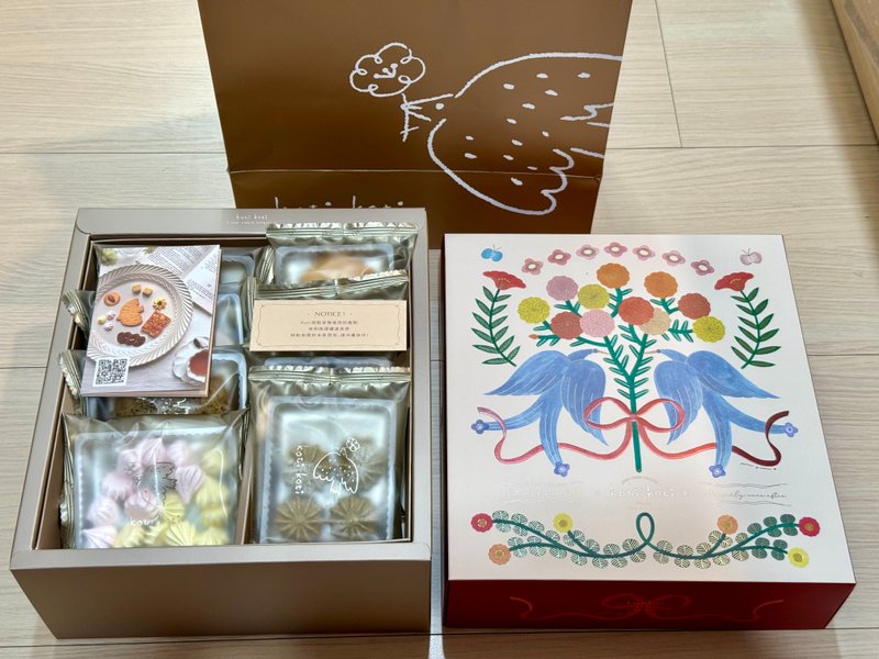 位在捷運中山站、赤峰街附近的 KotiKoti,一直是我和太太過節時送禮的口袋名單。可愛的小動物造型餅乾、搭配設計感十足又有質感的鐵盒,光是看到就讓人心情變好。因為自己本身從事圖書相關工作,在開始挑選喜餅時,一看到 KotiKoti 的「童話故事書禮盒」就立刻被吸引。整個禮盒尺寸相當大,拿在手上很有份量感,外層是書本造型的紙盒,打開後除了有小包裝的點心,還搭配一個精緻的鐵盒,整體就像是在翻開一本童話故事,視覺和細節都讓人印象深刻。