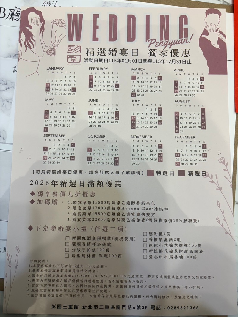 如果對婚宴日期沒有這麼在意的話(不用特別算命),可以參考他們好婚日的活動,會有特別的訂席優惠😻!