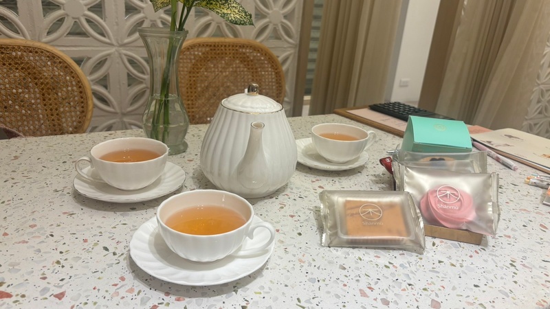 今天來到山木島試吃喜餅,店內布置精巧,喬喬美女笑容親切,準備了14款喜餅讓我們試吃,每一款餅乾都仔細介紹,首推鉑金錫蘭紅茶-餅皮是薄脆的威化餅、內餡是杏仁脆片,紅玉紅茶蛋糕-帶著紅茶香氣,再配上愛瑪士包的特色橘,聽說是很多新人必選的品項,紅心芭樂磅蛋糕-真心有紅心芭樂的滋味,蘋果費南雪-醃漬過的蘋果可以吃到蘋果派的口感,洛神馬林糖-完全讓整盒喜餅帶上粉紅泡泡,每項餅乾都讓我們ㄧ試就喜歡,試吃完立馬就決定就是它了,不知道大家有同感呢?