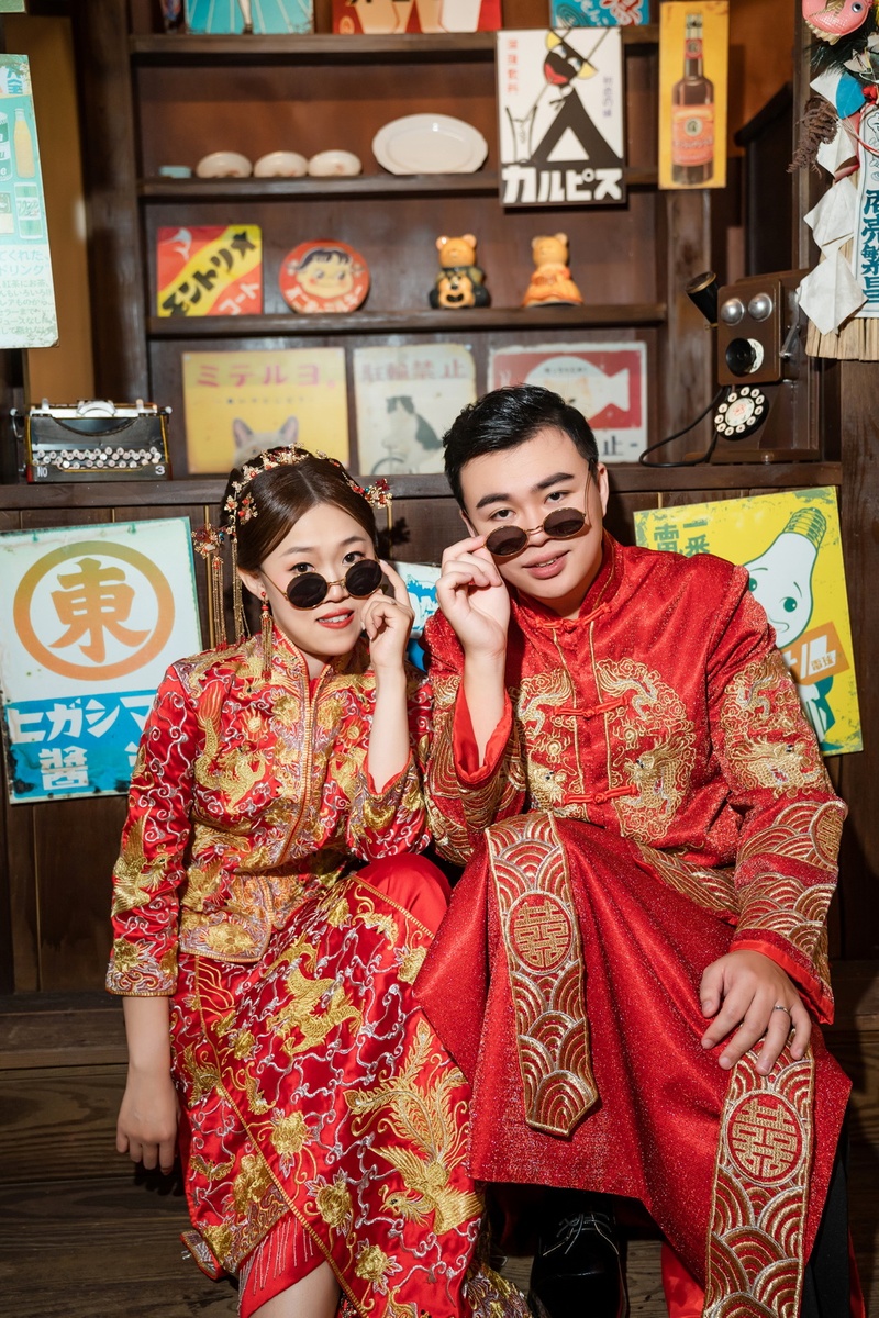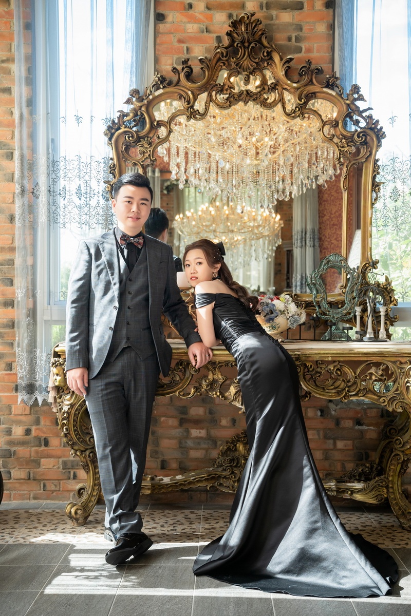 攝影師和燈光師都很幽默,拍攝過程中充滿了歡笑聲,自然也就不緊張了,本來還在擔心不知道如何擺拍,還好攝影師有動作指導,讓我的三套禮服都能順利完成拍攝,真的讚讚耶!!