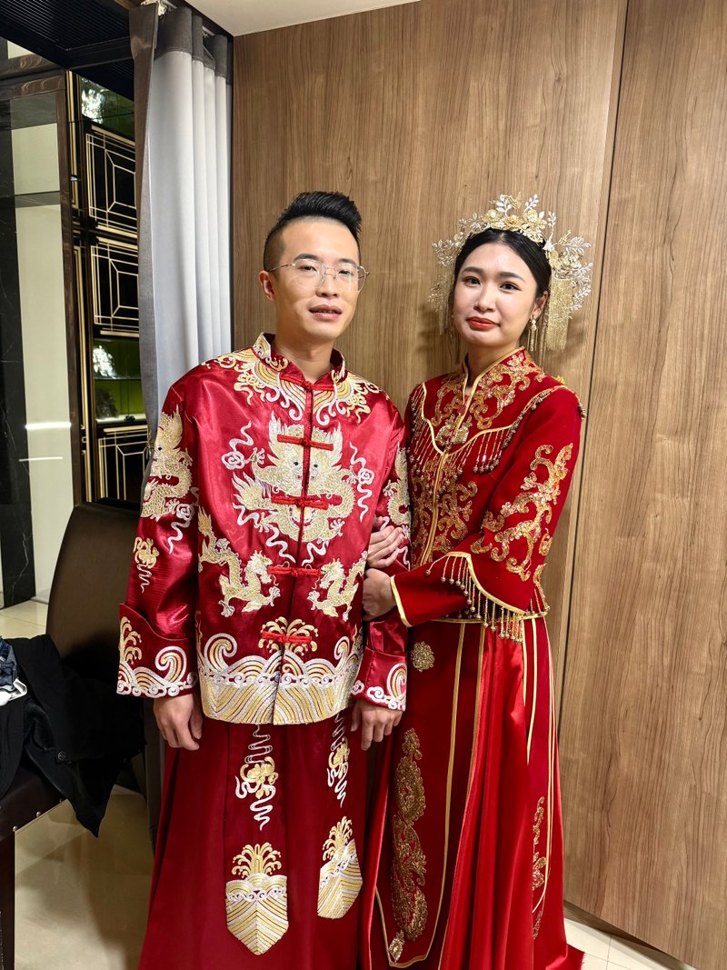 去台中婚紗展逛了很久不知道從何選起時就被帝芬妮的接待拉了進去,老公聽完介紹、看完照片後,就直接下單了,也很感謝接待我們的姐姐給我們最實惠的優惠,過程因為家裡的種種因素無法去拍攝選婚服,接待我們的雨霏姐聽了我們的訴求後,幫我們跟公司申請無條件延期,想要的中式婚服被選走了無法拍攝我們想要的風格,雨霏姐知道後立馬幫我們跟公司申請中式披風,真的非常感謝🙏