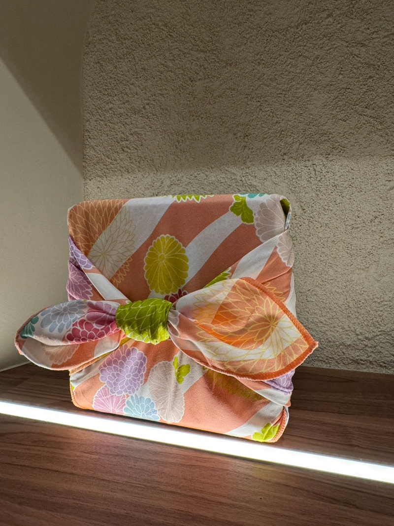 每一份喜餅都用風呂敷細心包裹,像是在把祝福一層一層地包進去,