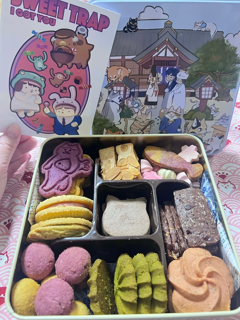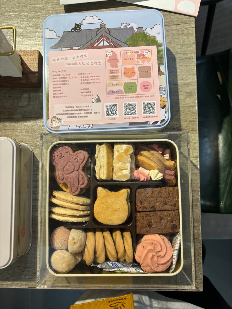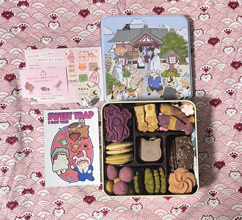 內容物也很有誠意,餅乾種類很多元,包含造型餅乾、夾心餅、茶口味曲奇、巧克力類點心等,甜度不會過高,吃起來不膩。尤其是貓咪造型餅乾真的超可愛,長輩跟朋友看到都會先拍照再吃(笑)。