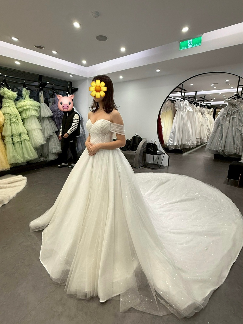 新娘試穿婚紗時,Una 也會依照喜好推薦適合的款式,給予很多實用建議,讓挑選婚紗的過程變得輕鬆,幫助有選擇障礙的新人順利挑到心目中的Top 1,非常推薦!