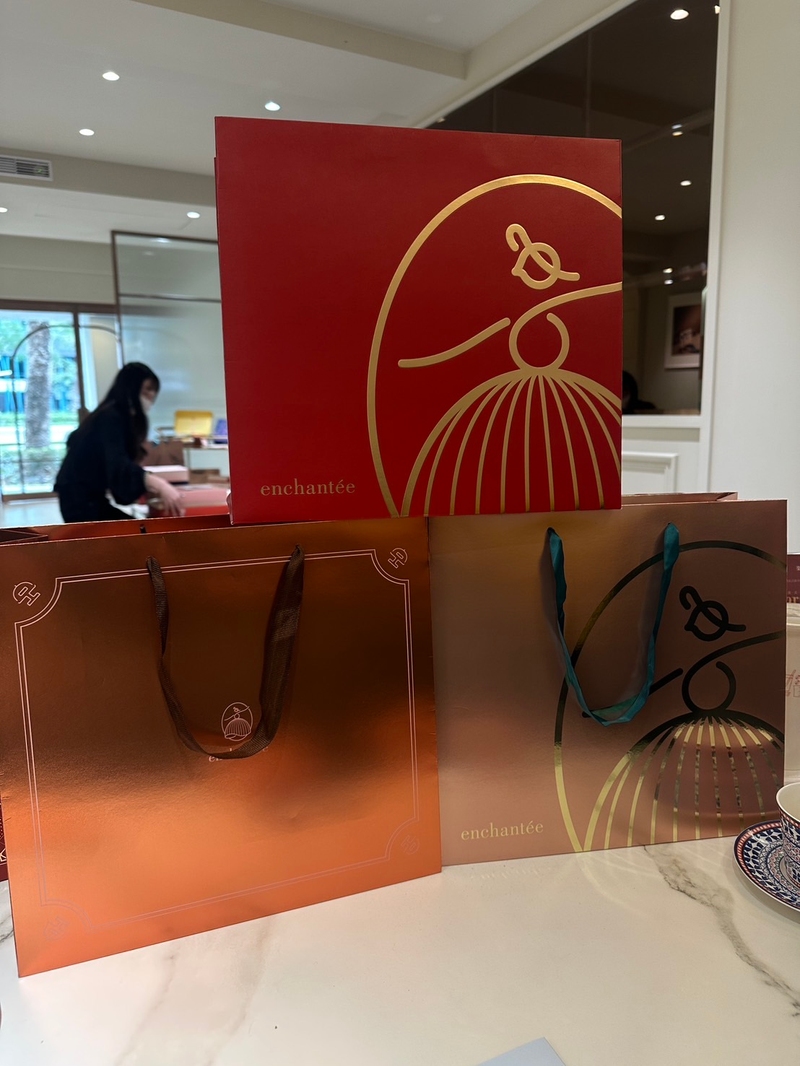 我自己非常喜歡藍色緞帶款式,而我男友則是偏好正紅色的禮盒,另外提袋部分也很用心的有多種款式挑選,幸運的是,我們下訂時有升級提袋的優惠,於是我們的提袋上也有跳舞女孩的圖樣了~💛
