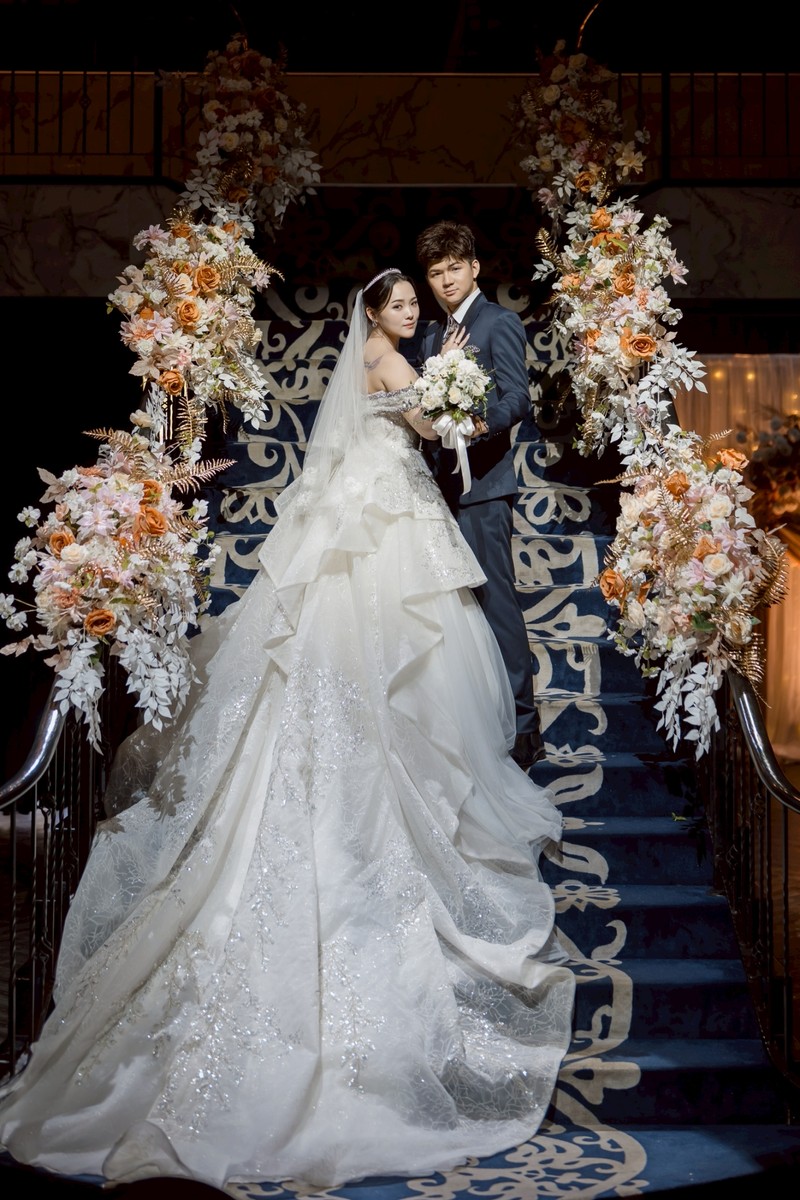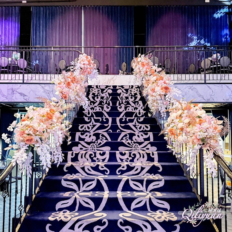 ✨ 亮點三:最令人驚艷的「樓梯手把花」我最心動的莫過於樓梯手把的設計!沿著扶手蔓延的花藝,讓轉角處都成了絕佳的取景點。每一束花的綁紮都非常牢固且細緻,動線上的美感延續,讓整個場域充滿了流動的生命力。