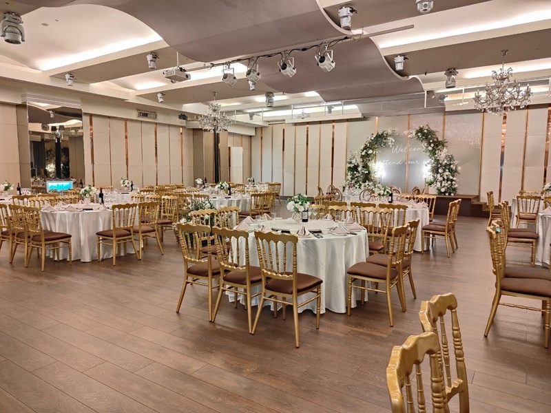 一開始來到彭園新板店參觀婚宴場地,心裡其實抱著比較的心態,但聽完介紹後,很快就有了答案。身為準新郎,我最在意的是地點與便利性。場地離我們家不遠,籌備過程往返相當方便;又位於板橋車站旁,交通四通八達,親友不論搭火車、捷運或自行開車前來都很便利,這點讓我們非常放心。