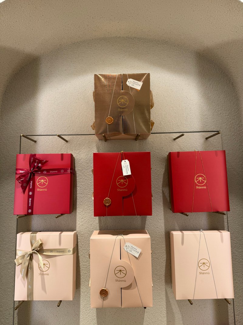 一進到店裡就被牆上各種喜餅款式展示吸引,除了西式的也有中西合併的禮盒