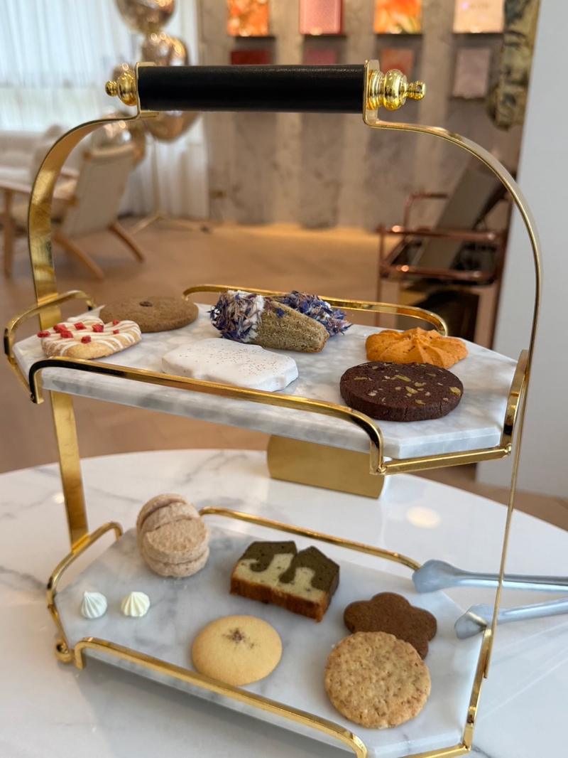 打開喜餅盒後,裡面的品項豐富且排列得錯落有致。在口味方面,這款喜餅完美打破了傳統甜點給人「過於甜膩」的刻板印象。我品嚐了幾款招牌餅乾,口感酥脆且層次分明,奶油的香氣濃郁卻不膩口。其中,我特別喜歡帶有茶香與堅果果乾的款式——淡淡的茶韻與微酸甜的果肉在嘴裡交織,咀嚼間還能吃到堅果的香氣,吃起來清爽且毫無負擔。下午時分搭配一杯熱紅茶或無糖黑咖啡,簡直是完美的下午茶饗宴。