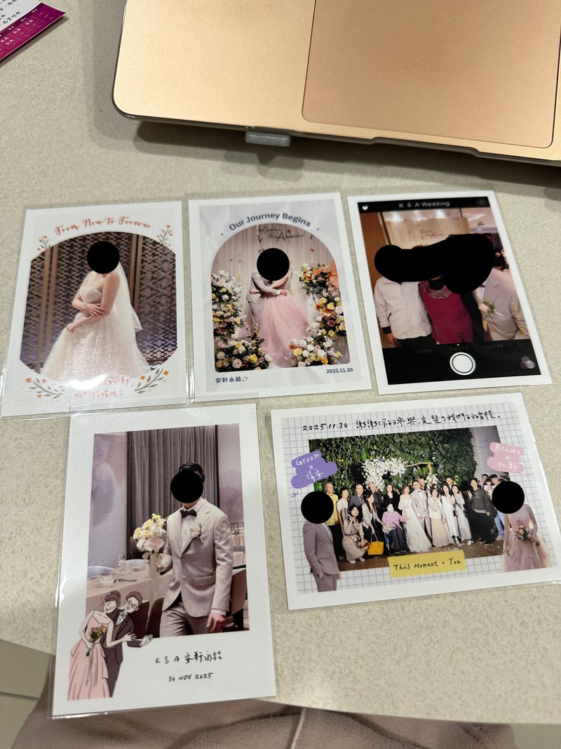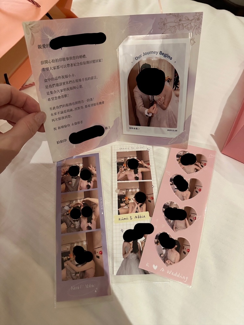 婚禮結束後收到滿滿的賓客照片&祝福(沒錯!照片背面可以留言,現場小幫手也有幫我們跟賓客留下祝福&收集成冊),真的很感動,最後我跟先生都覺得拍拍印是我們整場婚禮很滿意的廠商之一,真心推薦大家婚禮可以租用哦~留下不後悔的回憶吧!