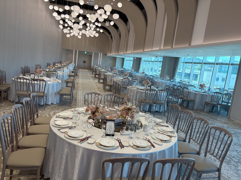 基隆彭園是我們第一間參觀的會館,第一次拜訪是Vicky帶我們參觀,過程非常放鬆,不會強迫推銷或是要你現在就決定(這在之後參加婚展遇到一堆婚紗業者後更覺得加分了),沒看到之前彭園的裝潢,但重新裝潢後的彭園非常符合我們的審美,也許會有更漂亮的場地,但我覺得婚宴要考慮的東西太多,如果全部都要一昧追求最好只會消磨我們的喜悅,就像是樹林中撿果實一樣,想要撿到最大的那顆最後什麼都沒有,加上交通、停車、價格我覺得已經是90分以上,就不再鑽牛角尖,其實在決定下定前我們有因為其他因素遲遲無法決定,但謝謝Vicky不厭其煩的跟我們分享她的經驗給予我們建議,最後終於能下定決心,籌辦婚禮的好多顆石頭終於能落下其中一顆大的真的是太好了