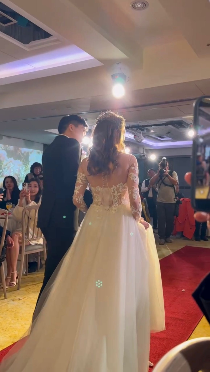 這裡要特別誇獎我們的主持人!語氣溫暖親切,節奏掌控得非常好,完美緩解了新人的緊張感。在流程引導上專業又流暢,讓這場跨國婚禮在溫馨的氣氛中順利進行。整體流程流暢度: