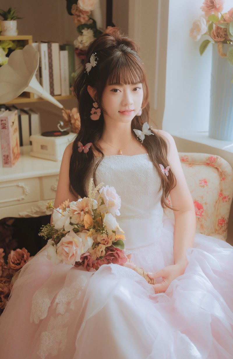 到了拍攝當天,造型師宜樺,也是很早到化妝間準備,我到達時直接開工,定妝的過程中也是很舒適,邊聽音樂邊上妝,可以跟造型師討論妝髮,拍攝時造型師也是跟全場喔,如果妝髮醜了,馬上上前處理,真的很棒(辛苦了),陪著我到拍攝結束才收工。