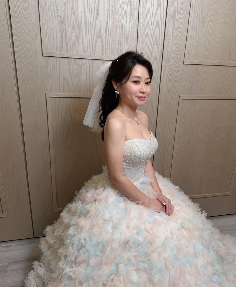 另外,我原本希望一進時能搭配長頭紗,老師在看過我的婚紗後,專業的建議不要使用,以避免整體造型過於繁雜,並貼心的親手幫我製作了一個帶有小頭紗的蝴蝶結及各式配件,讓我在保有夢幻感的同時,也能更符合整體造型,真的非常感動。