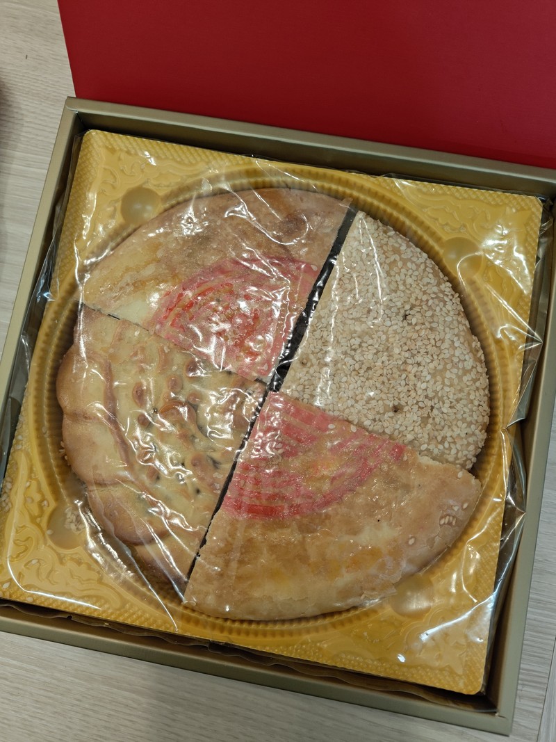 選擇山木島最主要的原因之一是有中西雙層的選擇,可以漂漂亮亮的送出中式大餅,而且中式餅很好吃!要注意的是中式餅要試吃只能宅配,現場門市是沒有的,建議如果也是考慮中式大餅的新人,可以先宅配試吃中式餅後再去門市,這樣西式餅試吃也喜歡的話就有當日下訂的優惠了😆
