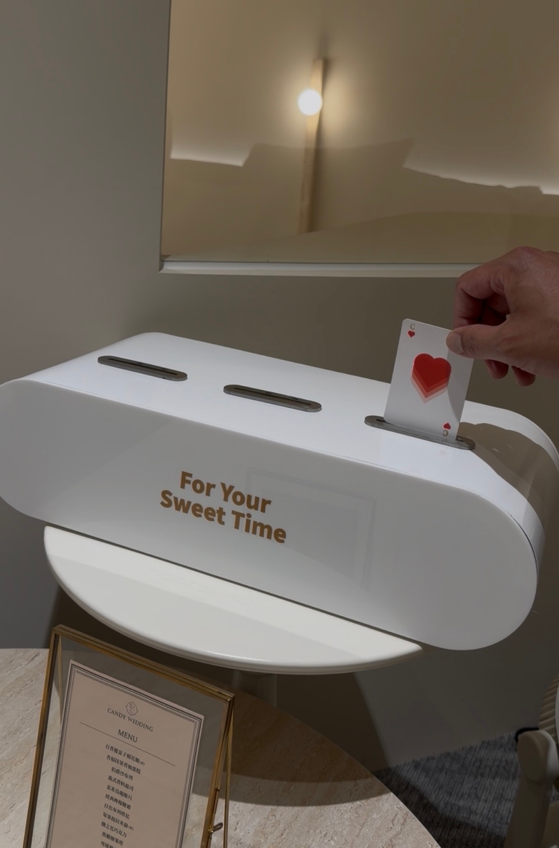 最近去 Candy Wedding 試吃喜餅,整體體驗真的蠻喜歡的!一走進去就覺得氛圍很溫柔,也很有儀式感,空間布置精緻又帶點浪漫,讓人心情很好。介紹的過程不會有壓力,不是那種制式推銷,而是像聊天一樣慢慢分享每款喜餅的特色與理念,聽起來也很舒服。試吃的過程可以很放鬆地品嚐,不會被催促,可以邊吃邊討論,很適合和另一半一起慢慢挑選。整體來說,從環境、服務到試吃體驗都很加分,如果正在找喜餅的新人,真的會蠻推薦來體驗看看。讓準備婚禮的過程中,增加儀式感與回憶😬❤️