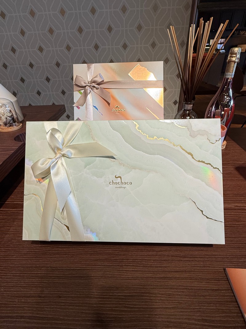 彩盒剛好遇到有新的花色上市,第一眼就看中質感超好的‘’結晶禮盒‘’,搭配上粉紅色提袋非常滿意,重點是價格也在預算內,當場就下訂啦,希望後續能聽到親友對喜餅的稱讚🥰。